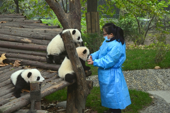 私たちは見えないところに、彼らはいつもいたれりつくせりで国の宝の世話をします。これは彼らの日常仕事だけではなく、彼らの志願でもあります。だから、飼育員たちは高強度な体力と精神上のストレスに耐えます。初心忘れるべからず、彼らはこういう平凡で特殊な仕事への愛を持ちながら、この道を沿って歩き続いてます!ここで、これら可愛くて尊敬すべき人たちに対して、敬意を表したいと思います!