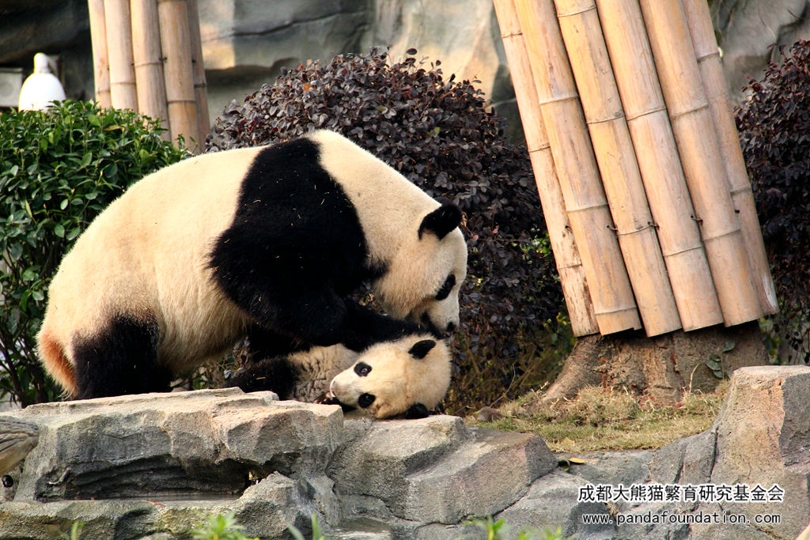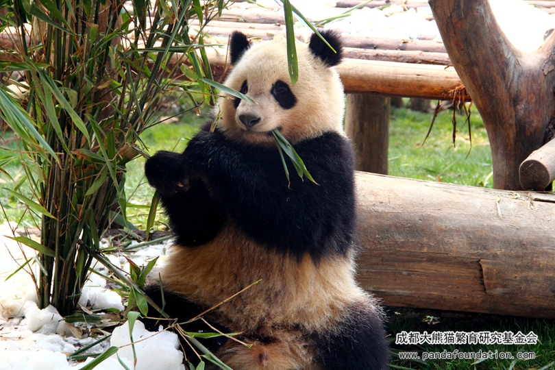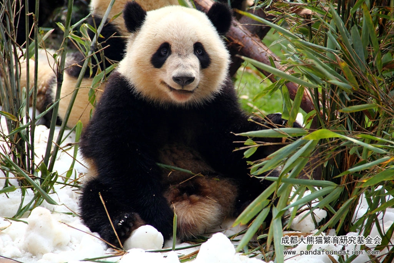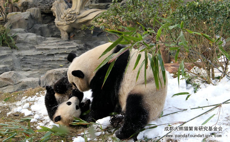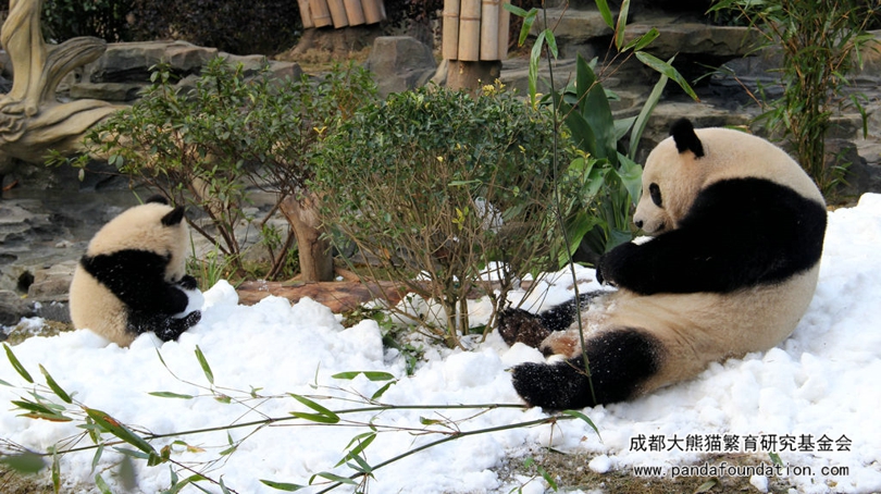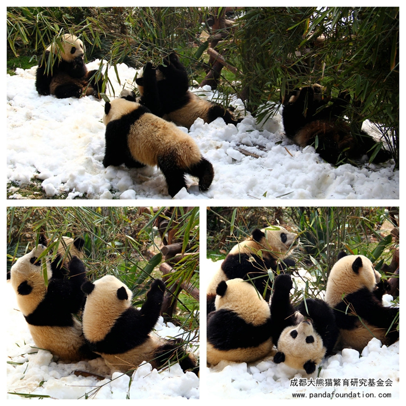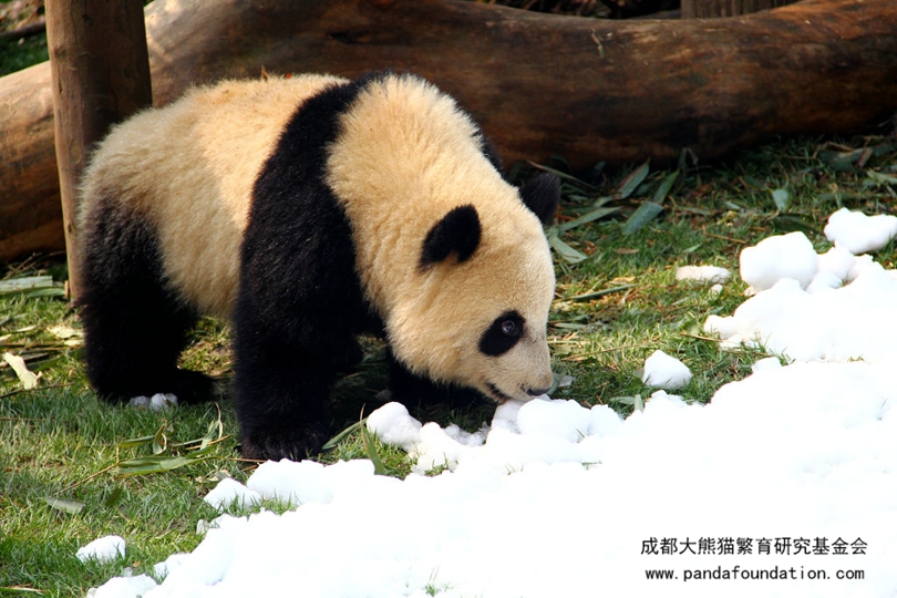 元々野生のパンだは海抜が高い山間地帯に暮らし、気温低い環境に耐える動物だと見られます。しかし、成都は中国の西南地方なので、あまり雪が降りません。だから、飼育員はパンダが雪が見えるように人工雪を用意しました。