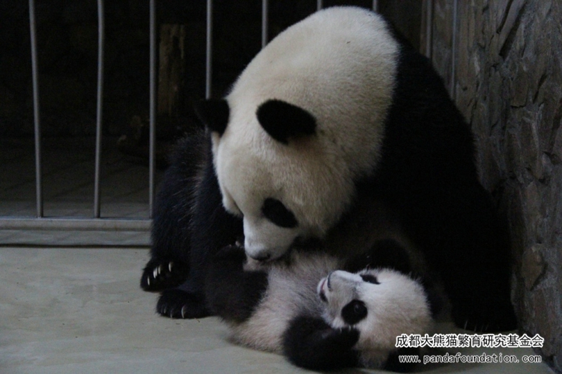 お母さんの愛は時には慈雨のようにパンダに潤いを与え、時には山崩れのようにパンダを襲います。