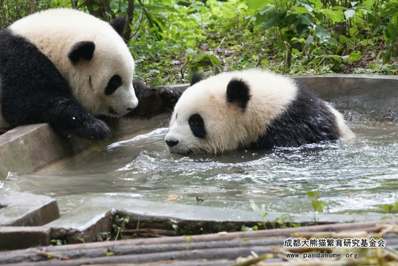 熱い時、幼年園でパンダを見たら、いつも池の隣にいた「嬌奥」が見えて、時には静かに坐ったり、時には活発に水の中で遊んだりします。