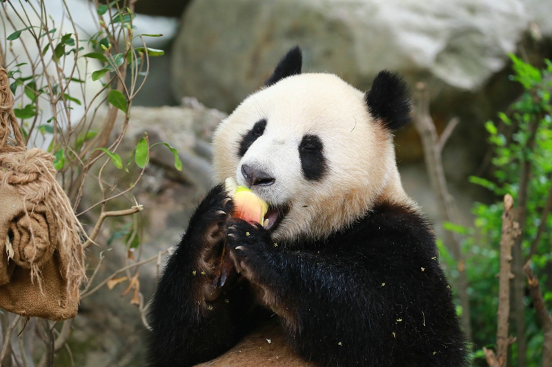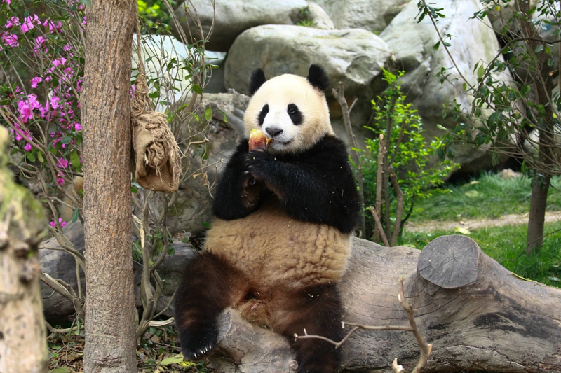 食事の時間を除いて、「成実」もほかのパンダのようにのどかな生活が好きです。実は、静かでハンサムなパンダになる決心をしました。