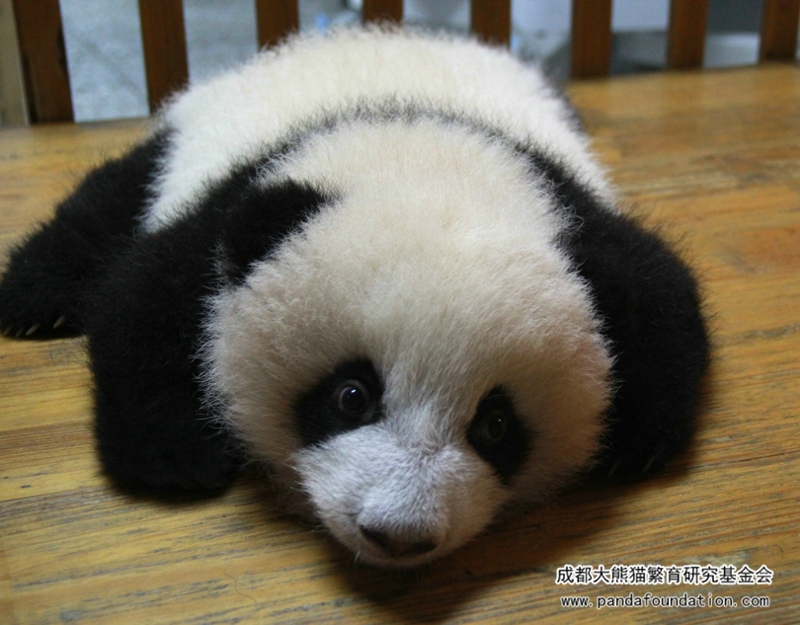五月の下旬に生まれた「ロゥロゥ」は仲間より身長が高い(パンダは普通に六月から八月までの間に出産します)です。それにしても、もう四ヶ月になった「ロゥロゥ」は四つの足で立って歩くのは出来ません。