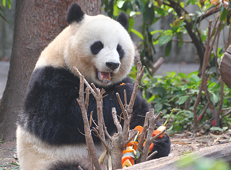 2010年4月,北川羌族自治县小坝乡发现一只受伤的野生大熊猫,经检查,它的肝、胆、胰都受到了严重的伤害,被迅速送往成都熊猫基地救治。它是 “5.12”汶川大地震后北川县抢救的第一只病危野生大熊猫,为了纪念此事,便给它取名为“北川”,也是希望它能够永远记得自己的故乡。在后续治疗过程中,专家们除了用药物治疗“北川”的疾病外,为了改变它长期的营养不良引发的病症,还人为地添加了许多精饲料,这使得“北川”对人类有了一定的依赖性。经过了一年多治疗,“北川”的身体状况得到了很大改善,但是从血液结果和超声波检查来看还未达到正常水平,仍旧需要长期用药物调养。因此,经报上级主管单位并组织专家们论证后,一致决定继续让“北川”留在成都,编号“765”,正式列入圈养大熊猫的谱系。刚被救回时的“北川”很瘦,而现在的北川仿佛一个吹满了气的气球,圆圆的脸蛋、蓬松的脸毛,看起来就像包子一样,所以大家给它取了一个爱称叫“川包子”。不过“北川”是一只正宗的野生大熊猫,虽然已经人工饲养很多年,它的警惕性还是很高。饮食上,它和其它的熊猫没有什么区别,除了正常采食竹子、竹笋外,“它”尤其爱吃苹果,所以还有一个别号叫“苹果川”。