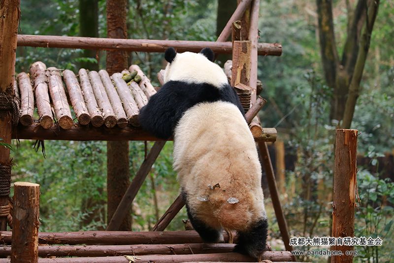 2010年4月,北川羌族自治县小坝乡发现一只受伤的野生大熊猫,经检查,它的肝、胆、胰都受到了严重的伤害,被迅速送往成都熊猫基地救治。它是 “5.12”汶川大地震后北川县抢救的第一只病危野生大熊猫,为了纪念此事,便给它取名为“北川”,也是希望它能够永远记得自己的故乡。在后续治疗过程中,专家们除了用药物治疗“北川”的疾病外,为了改变它长期的营养不良引发的病症,还人为地添加了许多精饲料,这使得“北川”对人类有了一定的依赖性。经过了一年多治疗,“北川”的身体状况得到了很大改善,但是从血液结果和超声波检查来看还未达到正常水平,仍旧需要长期用药物调养。因此,经报上级主管单位并组织专家们论证后,一致决定继续让“北川”留在成都,编号“765”,正式列入圈养大熊猫的谱系。刚被救回时的“北川”很瘦,而现在的北川仿佛一个吹满了气的气球,圆圆的脸蛋、蓬松的脸毛,看起来就像包子一样,所以大家给它取了一个爱称叫“川包子”。不过“北川”是一只正宗的野生大熊猫,虽然已经人工饲养很多年,它的警惕性还是很高。饮食上,它和其它的熊猫没有什么区别,除了正常采食竹子、竹笋外,“它”尤其爱吃苹果,所以还有一个别号叫“苹果川”。