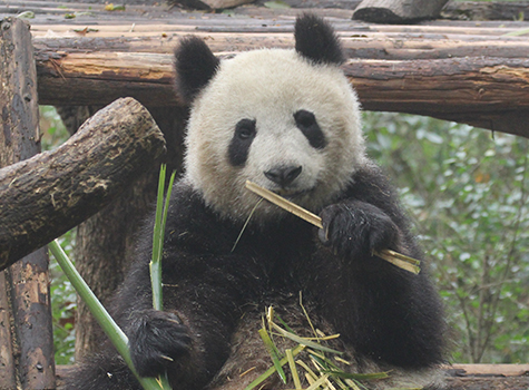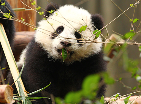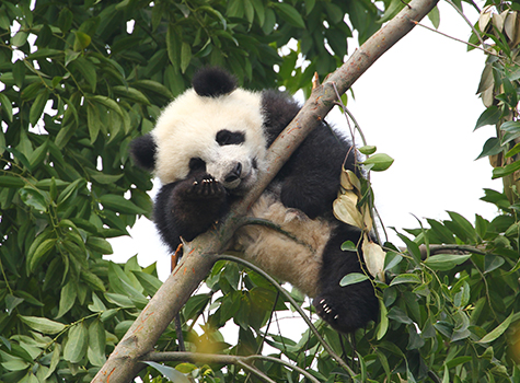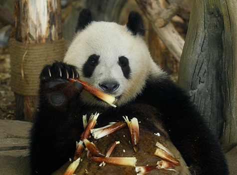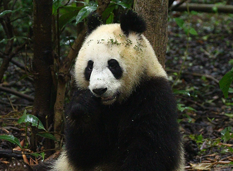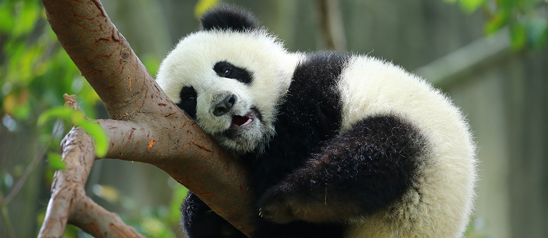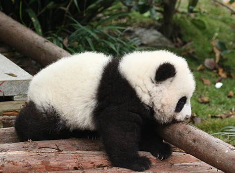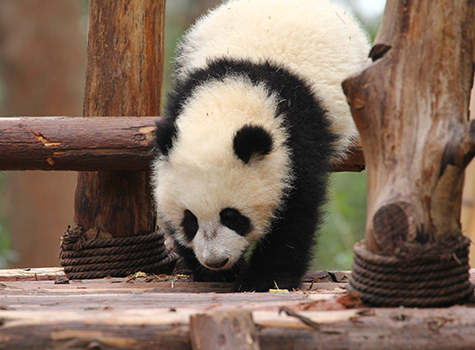 大熊猫“润九”的妈妈是“园润”,“园润”生产时,由于是初次产仔,且幼仔从产道出来并不是很顺利,所以产下幼仔的它表现得有些惊慌。在这种情况下,饲养团队立刻将幼仔从“园润”身边取出。在进行各项检查时,意外地发现,幼仔从嘴角到颈部有一道颇长的伤痕,饲养员怀疑是“园润”不断尝试抱起幼仔时,划伤了幼仔。饲养管理小组立刻通知兽医团队,即刻实施治疗。在对“园润”幼仔受伤情况进行仔细观察、研究后,他们决定为幼仔的伤痕进行缝合处理。伤口缝合手术进行得非常顺利,一共缝了九针。为此,饲养员们特别给它取名为“润九”,纪念它缝了九针,也寓意着健康长久。“润九”虽然不是由“园润”带大,性格却和“园润”很像,是个执着的小姑娘,喜欢挂在树上睡觉。有段时间喜欢睡在一个树坑里,只要有它在,没有谁可以抢走那个树坑。