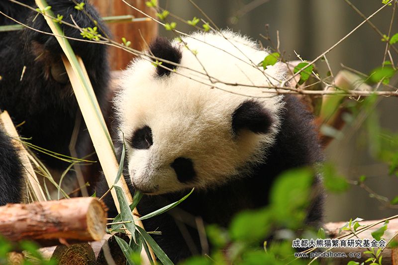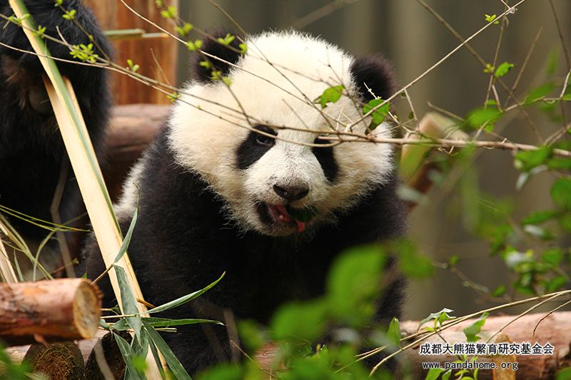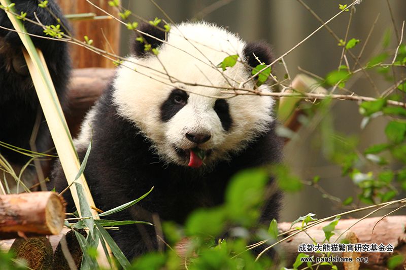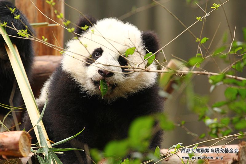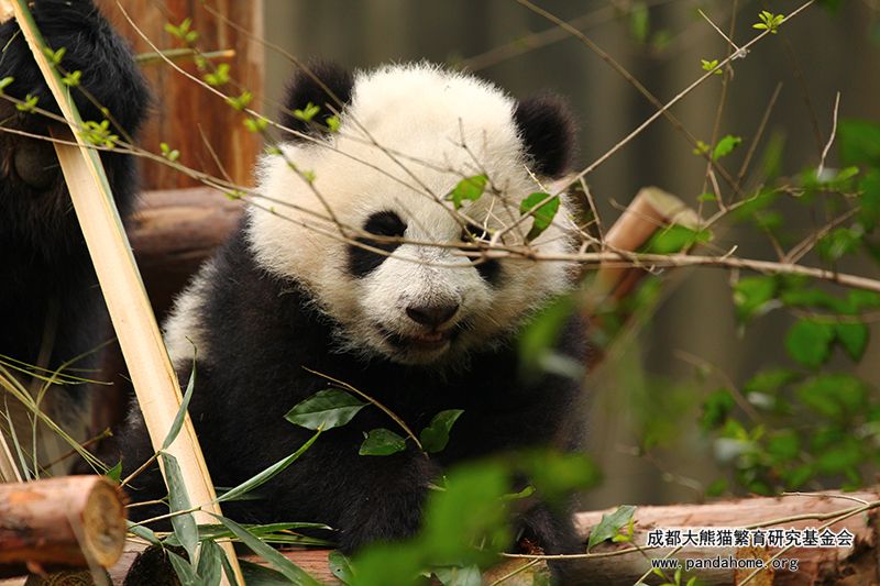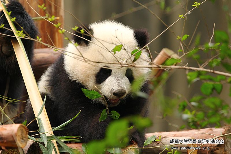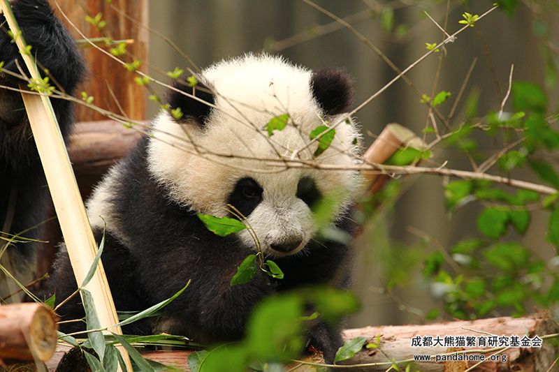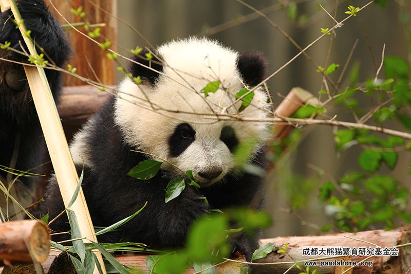 大熊猫“润九”的妈妈是“园润”,“园润”生产时,由于是初次产仔,且幼仔从产道出来并不是很顺利,所以产下幼仔的它表现得有些惊慌。在这种情况下,饲养团队立刻将幼仔从“园润”身边取出。在进行各项检查时,意外地发现,幼仔从嘴角到颈部有一道颇长的伤痕,饲养员怀疑是“园润”不断尝试抱起幼仔时,划伤了幼仔。饲养管理小组立刻通知兽医团队,即刻实施治疗。在对“园润”幼仔受伤情况进行仔细观察、研究后,他们决定为幼仔的伤痕进行缝合处理。伤口缝合手术进行得非常顺利,一共缝了九针。为此,饲养员们特别给它取名为“润九”,纪念它缝了九针,也寓意着健康长久。“润九”虽然不是由“园润”带大,性格却和“园润”很像,是个执着的小姑娘,喜欢挂在树上睡觉。有段时间喜欢睡在一个树坑里,只要有它在,没有谁可以抢走那个树坑。
